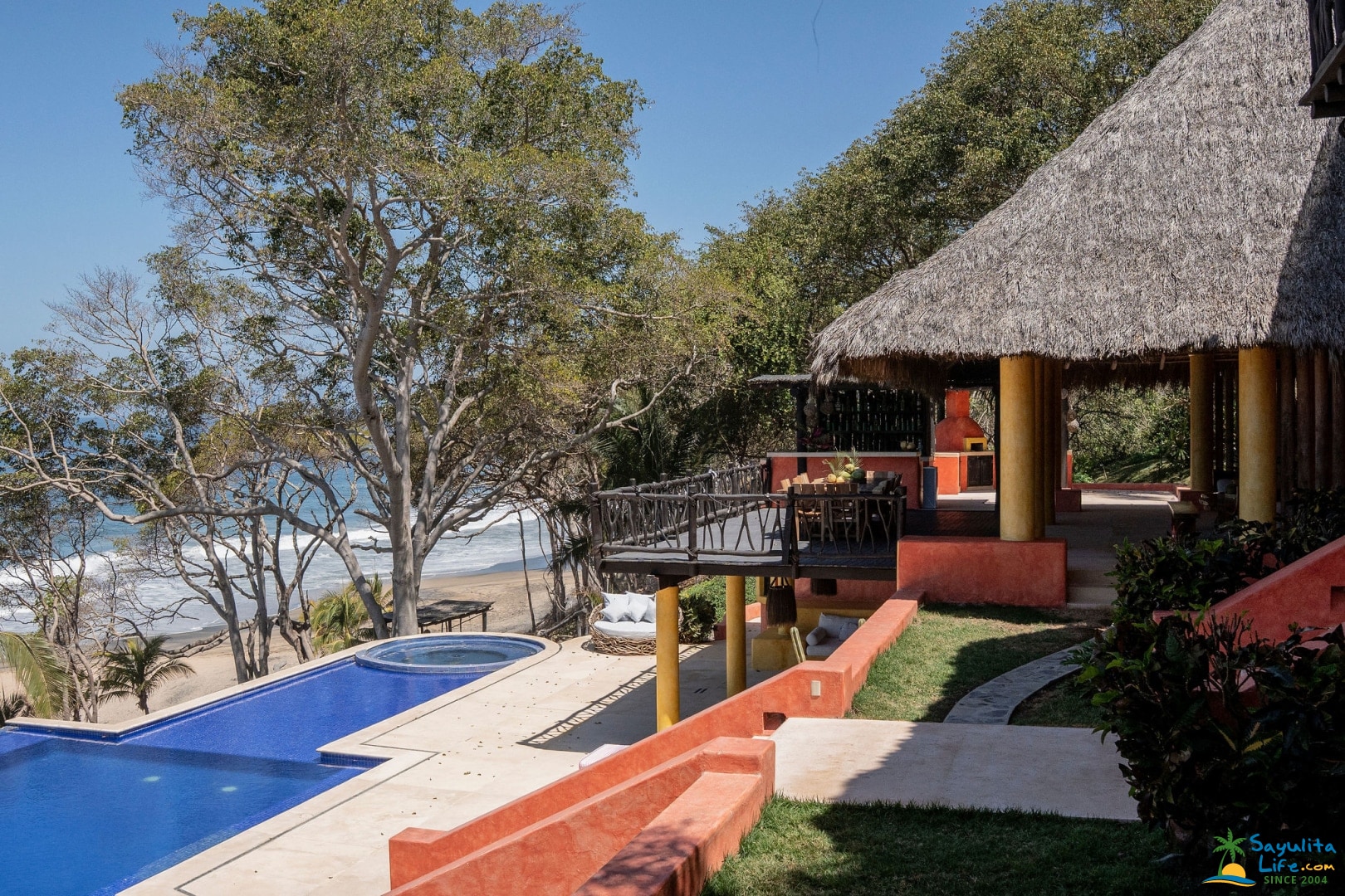 Sign In Create free accountCasa Mis Amores in Sayulita is a stunning and truly unique villa located on a private 1km beach and surrounded by 2.59 squared kilometers of gorgeous biodiverse private jungle. Just 5-10 minutes from the popular surf town Sayulita and 20 minutes from Punta Mita, this villa is the perfect location for weddings and other productions or a vacation with the family. With open common areas, perfect for taking in the views, enclosed air-conditioned rooms, and Starlink wifi covering the whole property, Casa Mis Amores is a perfect escape while remaining close to all the action Sayulita has to offer.
